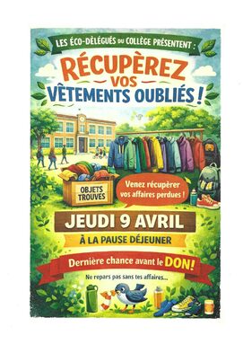Par Claudine Isserte, publié le jeudi 2 avril 2026 15:56 - Mis à jour le jeudi 2 avril 2026 15:57Venez récupérer vos vêtements oubliés jeudi 09 avril sur la pause déjeuner. Après, il sera trop tard. ils seront donnés. -